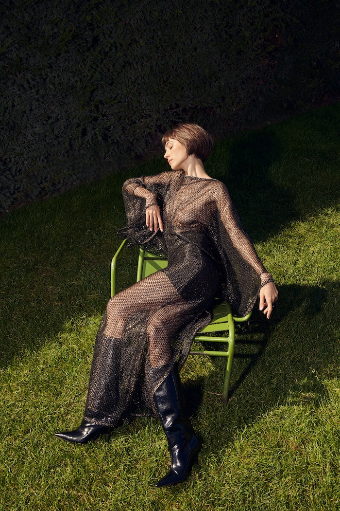 أضف شعرًا سلسًا وحقيبة يد بسيطة لتترك البريق في مركز الصدارة.