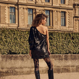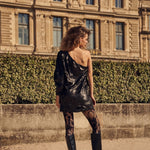 فستان ميني لامع ذو كتف واحد Nochi — حيث يلتقي اللمعان العالي مع الأناقة العصرية.
