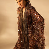الكَفتان أورييل لامع على شكل V — حيث تلتقي الأناقة السهلة بفن اللمعان المتلألئ.