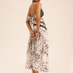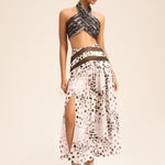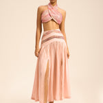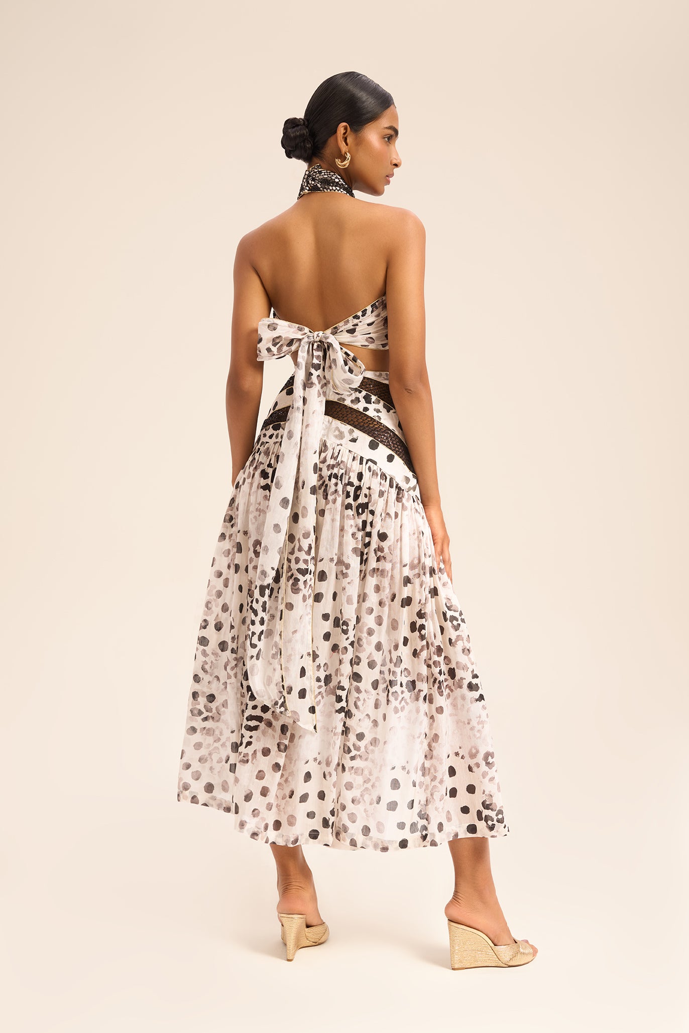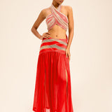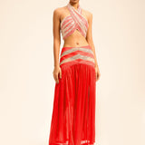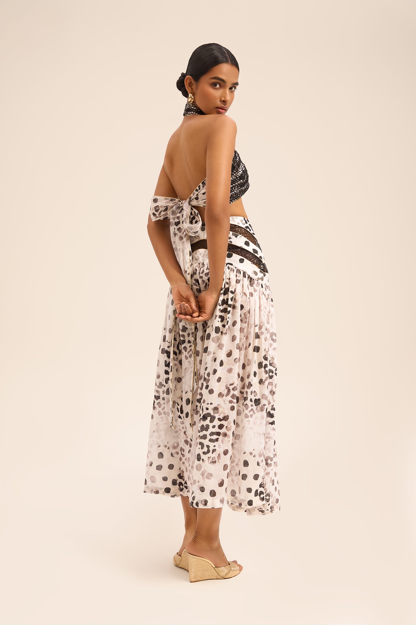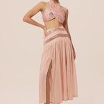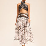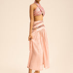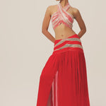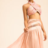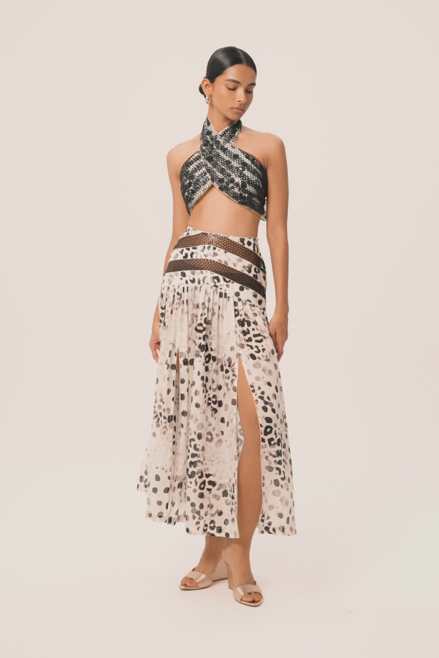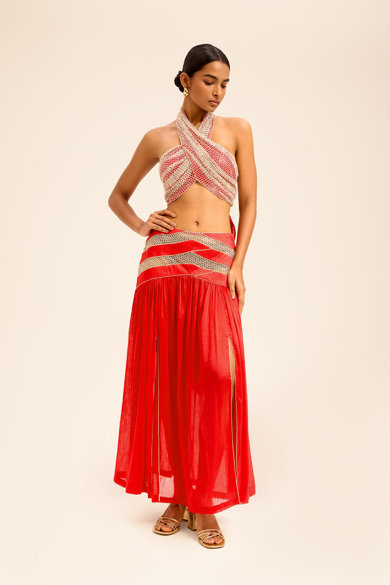 تتميز التنورة المهيكلة بطيّات ناعمة متصلة عند خط الخصر، مما يخلق حركة سلسة وجاذبية مصقولة ومرحة في آن واحد.