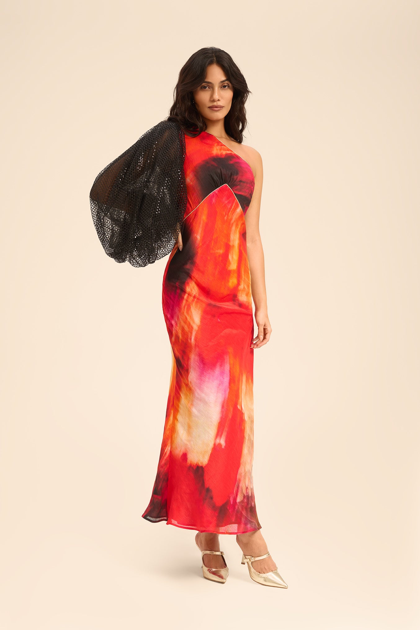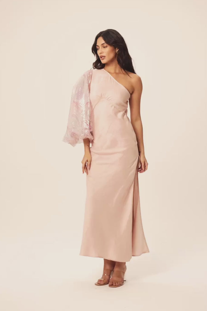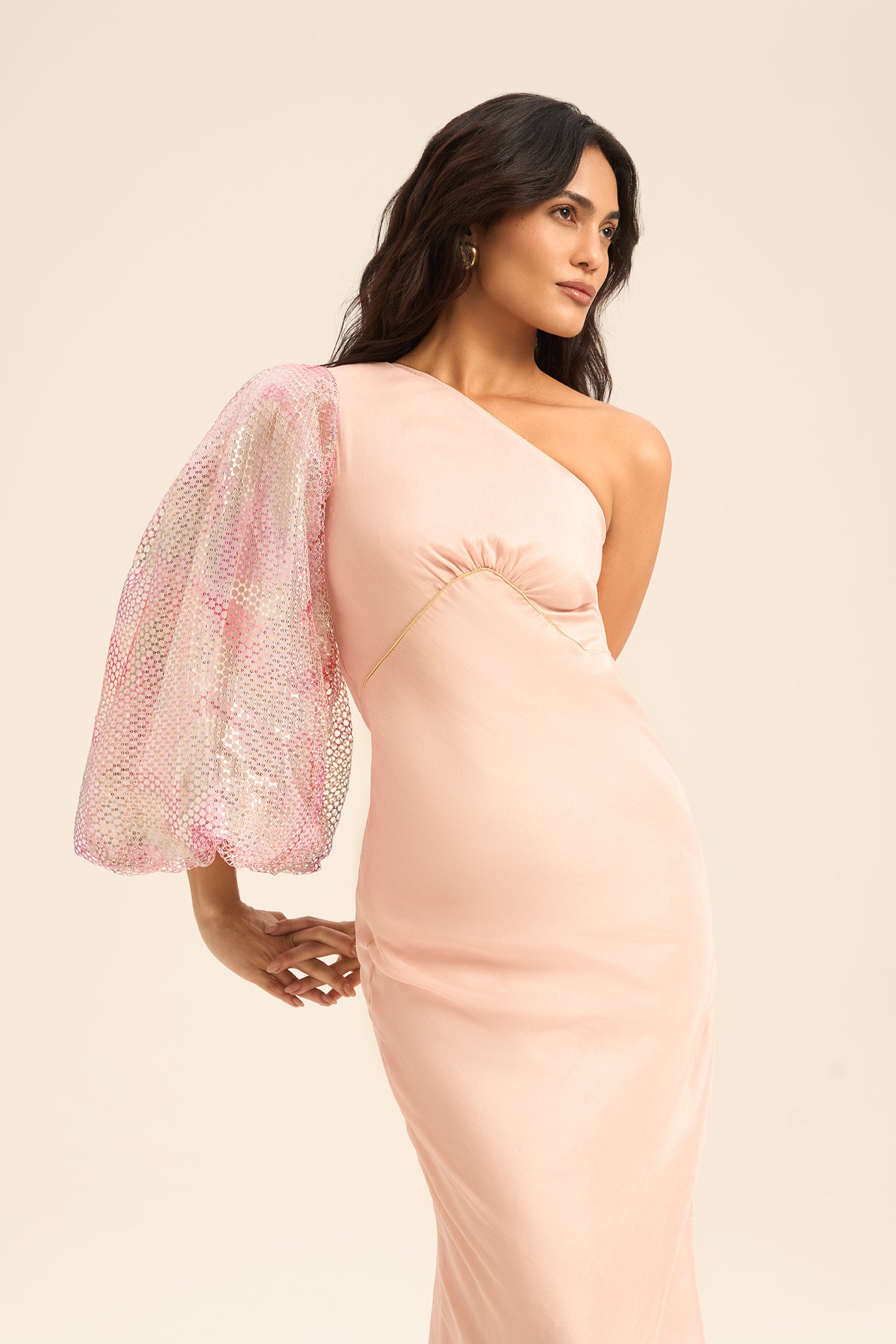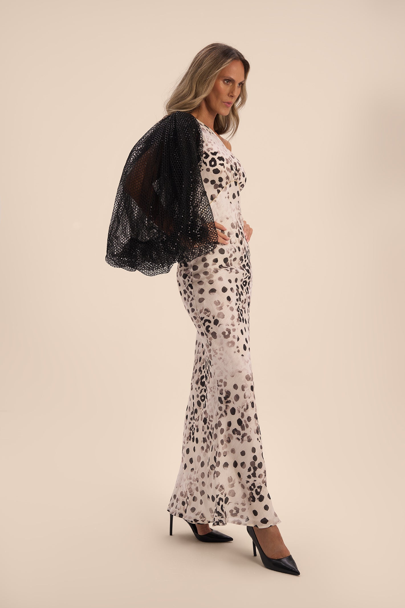 مبطن بالكامل مع بطانة بوليستر خفيفة لضمان سهولة الحركة والاحتشام، مع عرض التفاصيل الشفافة.