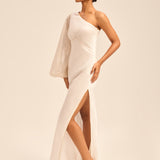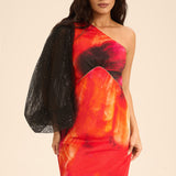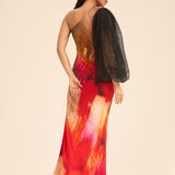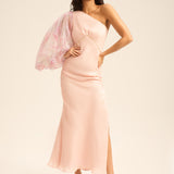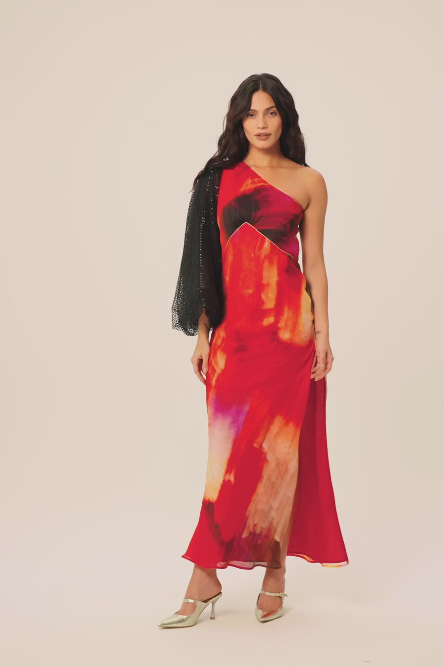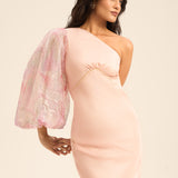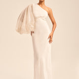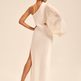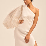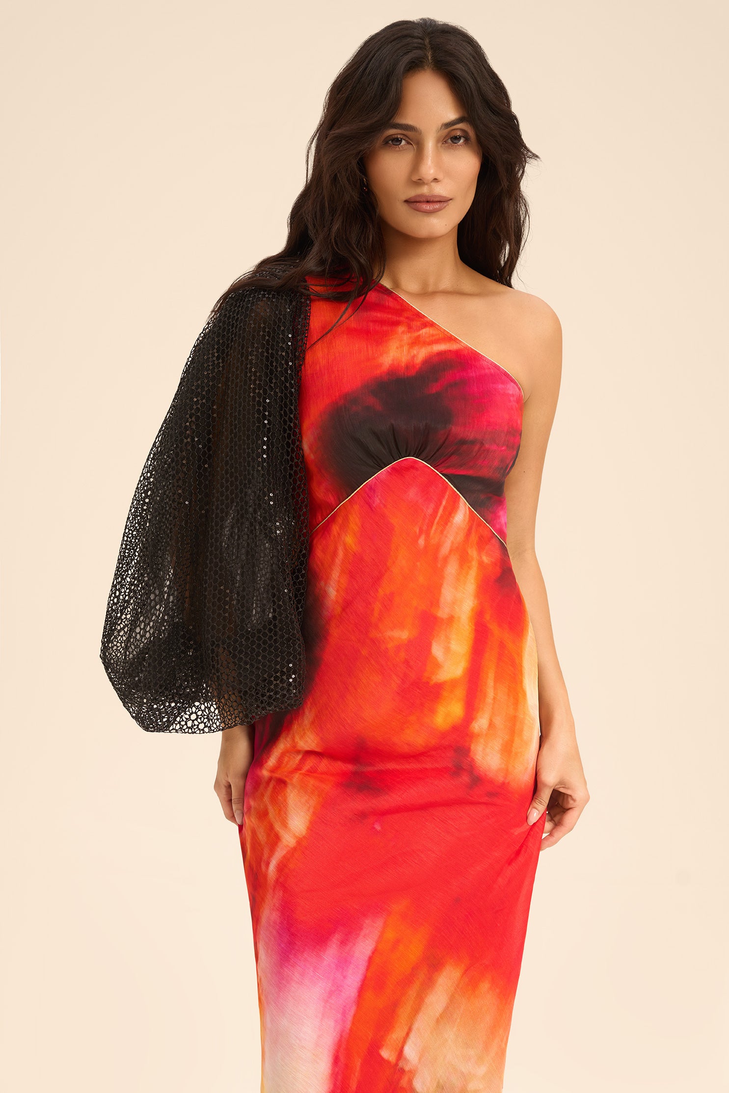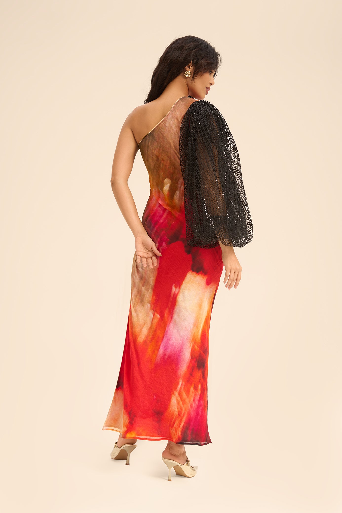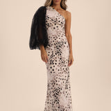 مبطن بالكامل مع بطانة بوليستر خفيفة لضمان سهولة الحركة والاحتشام، مع عرض التفاصيل الشفافة.
