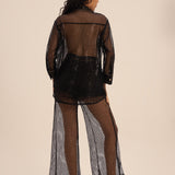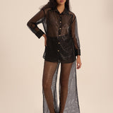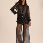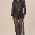 مجموعة قميص وبنطلونات فيونا الشبكية - مشعة وراقية، تلتقط جوهر الأناقة العصرية مع لامع الدانتيل، دقة مصممة، وتفاصيل أنثوية دقيقة.