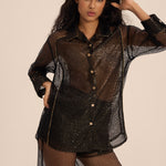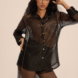 - قميص شفاف بأكمام طويلة مع تفاصيل مصممة