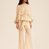The Alina Silk Shirt and Pants Set -a polished pairing of silk-soft elegance and radiant sophistication.