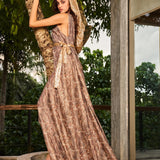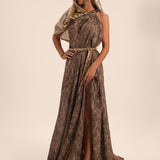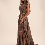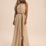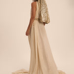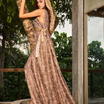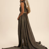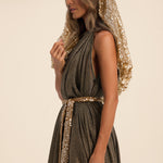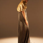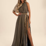 Crafted from a luxurious silk blend, this dress flows with a natural sheen and soft, graceful drape — offering refined comfort and a goddess-like presence.