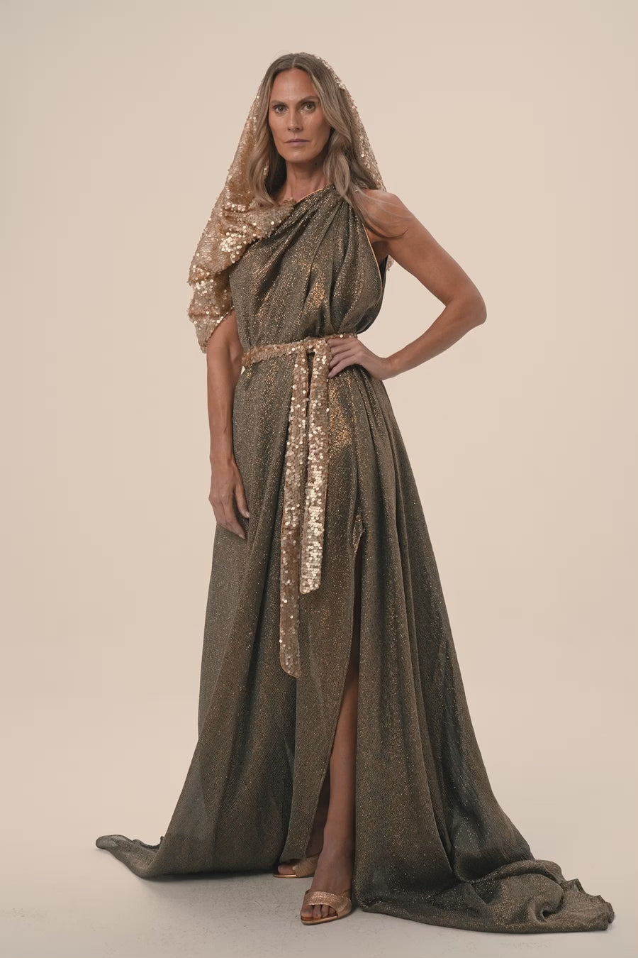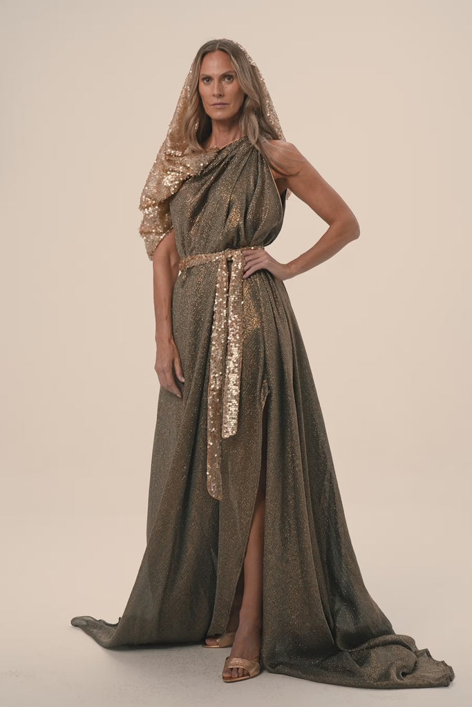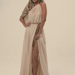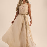The Aphrodite Max Silk Dress — an ethereal blend of fluid silk, sculptural asymmetry, and transformative elegance.