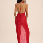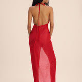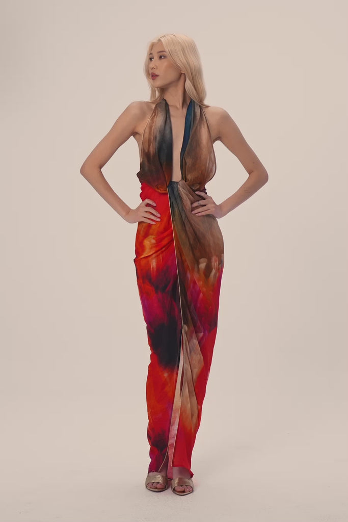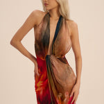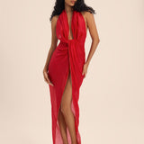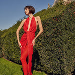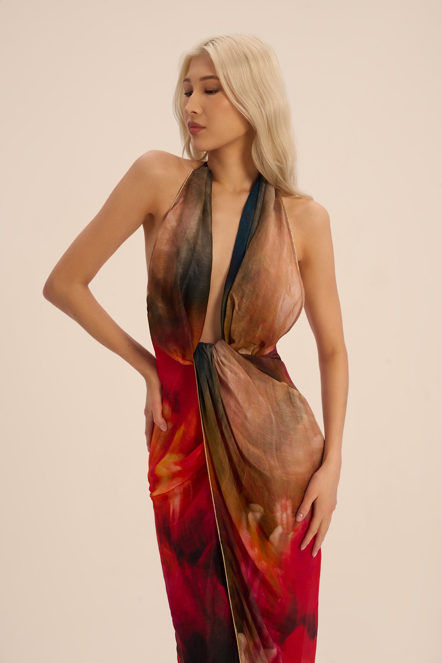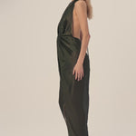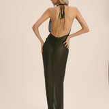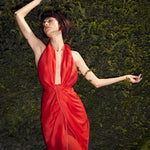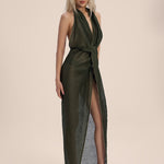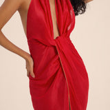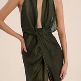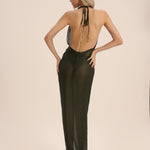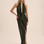 The Athena Linsilk Dress — a sleek fusion of halter elegance and modern, twist-tied allure