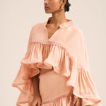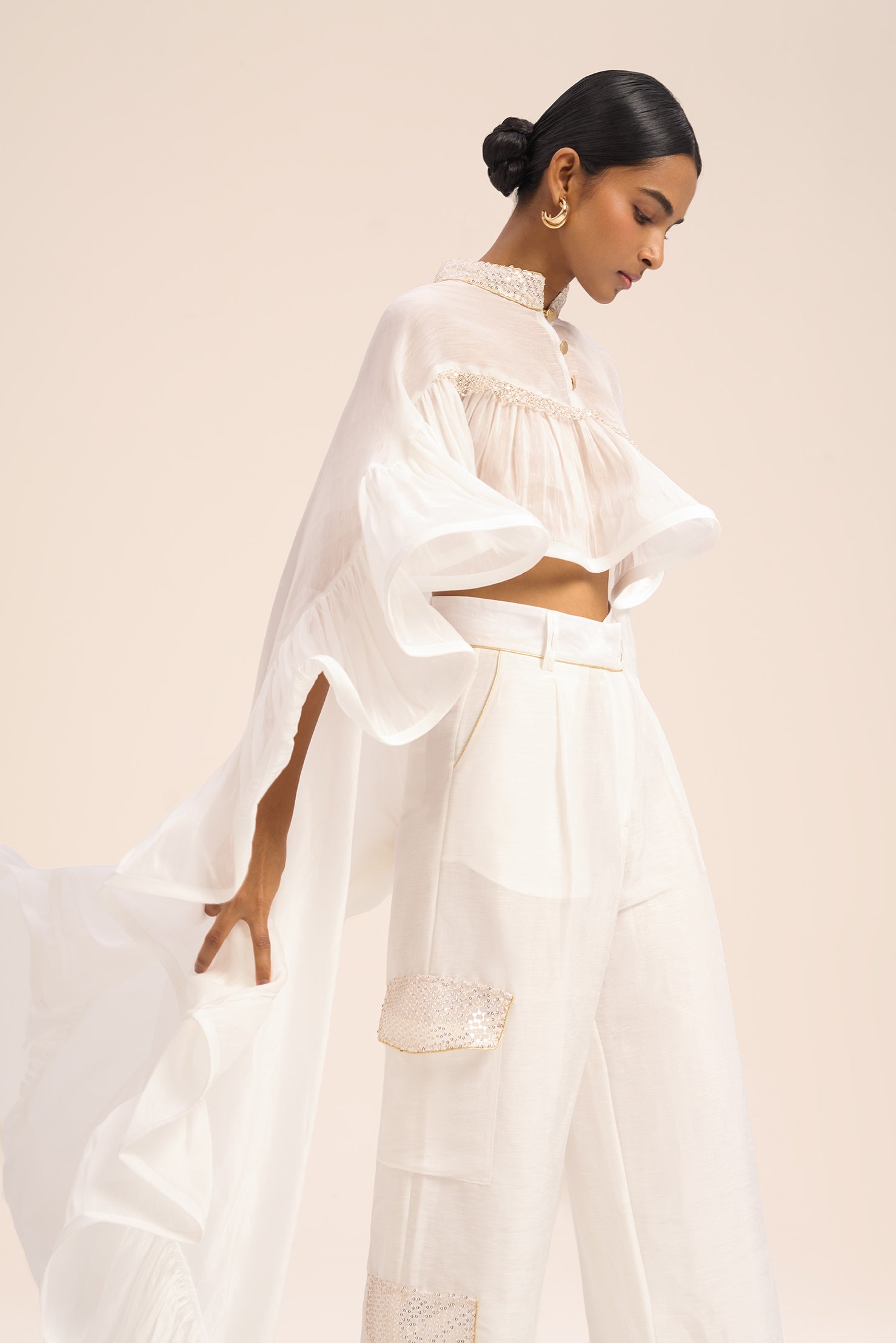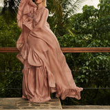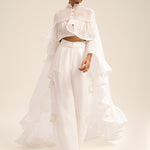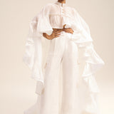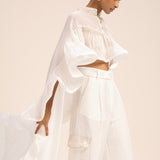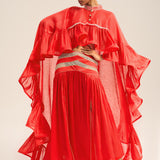 Crafted from a refined linen–silk blend, this cape offers a soft sheen and fluid drape — balancing structure and movement for elevated resort styling.