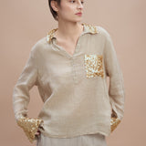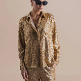 Meet your new wardrobe essential: the Florian Long Sleeve Shirt. This versatile long-sleeved shirt, adorned with shimmering sequin embellishments, is the perfect blend of elegance and versatility.