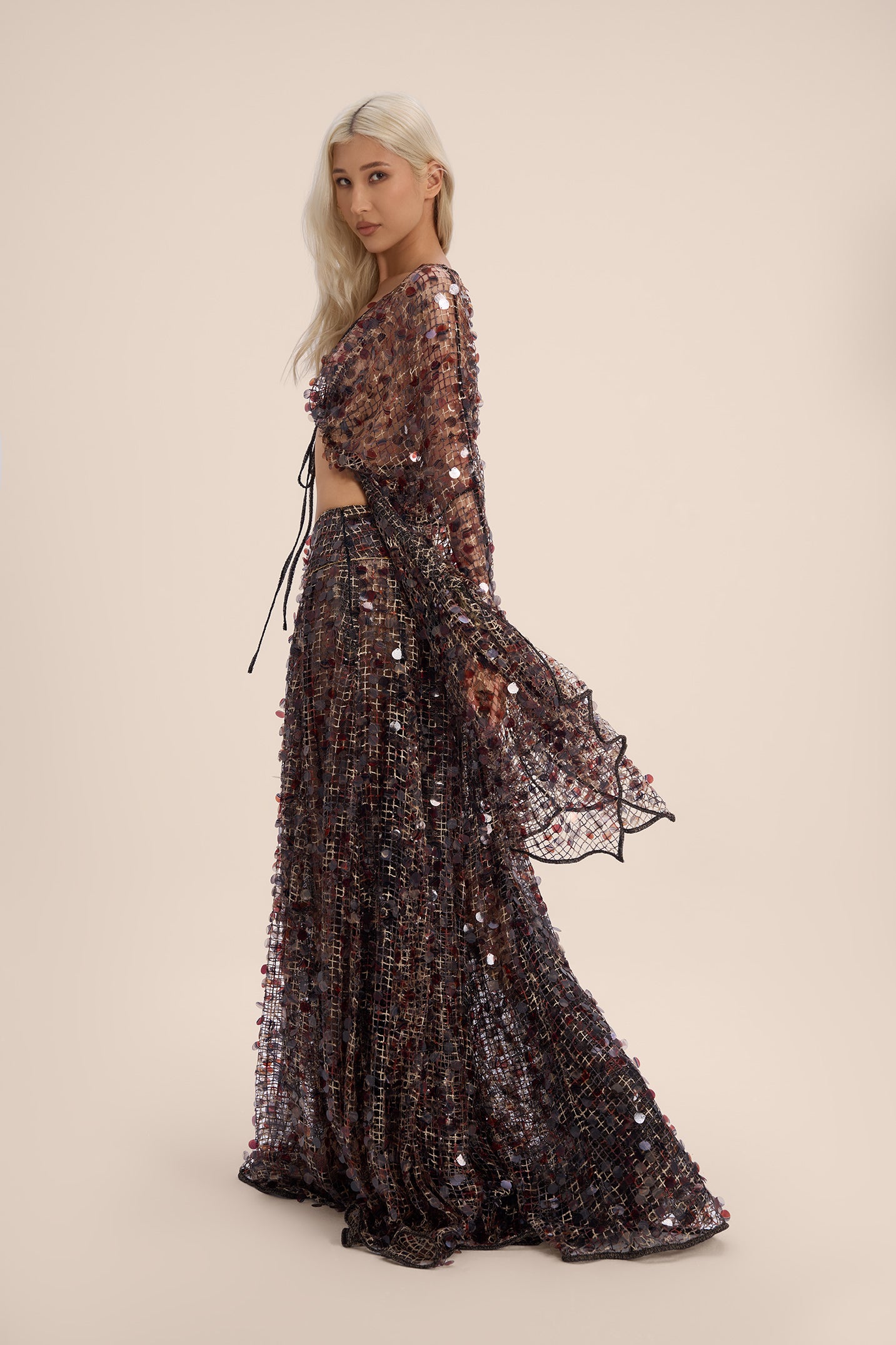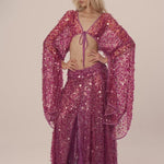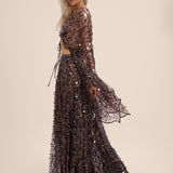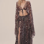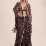Pair with the Katrina Sequin Maxi Length Skirt for a coordinated ensemble, or layer over a bralette or cami to balance coverage with allure.