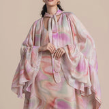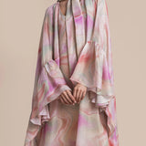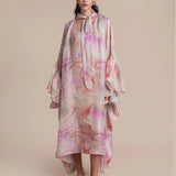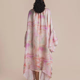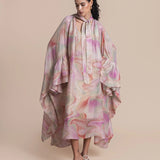 Experience the timeless beauty of the Megan Kaftan—a versatile piece that’s as comfortable as it is elegant. Crafted from luxurious printed shiny silk, this kaftan features a chic bow tie at the neck, ruffled long sleeves, and a flattering midi length. Its one-size-fits-all design ensures comfort and versatility.