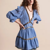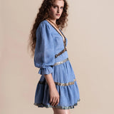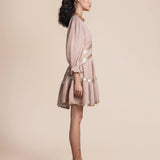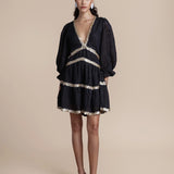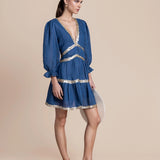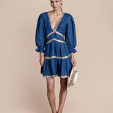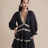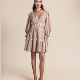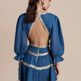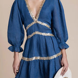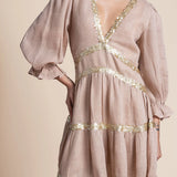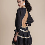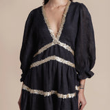 Exude effortless sophistication with the Miriam Backless Mini Dress, a striking combination of luxe linen and shimmering sequins. This mini dress features a daring backless design, long sleeves for a touch of elegance, and intricate sequin embellishments that add glamorous detail.