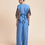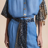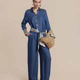Effortless sophistication meets luxurious comfort with the Ozei Wide Leg Pants. Featuring a chic high-waisted silhouette, a shimmering sequin-embellished belt, and a breezy wide-leg design, these pants offer a perfect balance of elegance and ease.