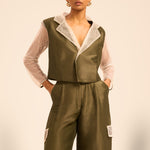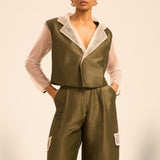 The Renee Linsilk Shirt and Pants Set — where tailored sophistication meets a whisper of shimmer for unforgettable elegance.