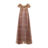 Whimsical, weightless, and utterly unique—the Soline Dress is a dreamy statement piece that floats with ease and light. Crafted from sheer, delicate fabric and adorned with oversized gelato-printed bigdrop sequins, it captures the joy of summer with a touch of sophisticated minimalism. Perfectly blending playful charm and elevated artistry.