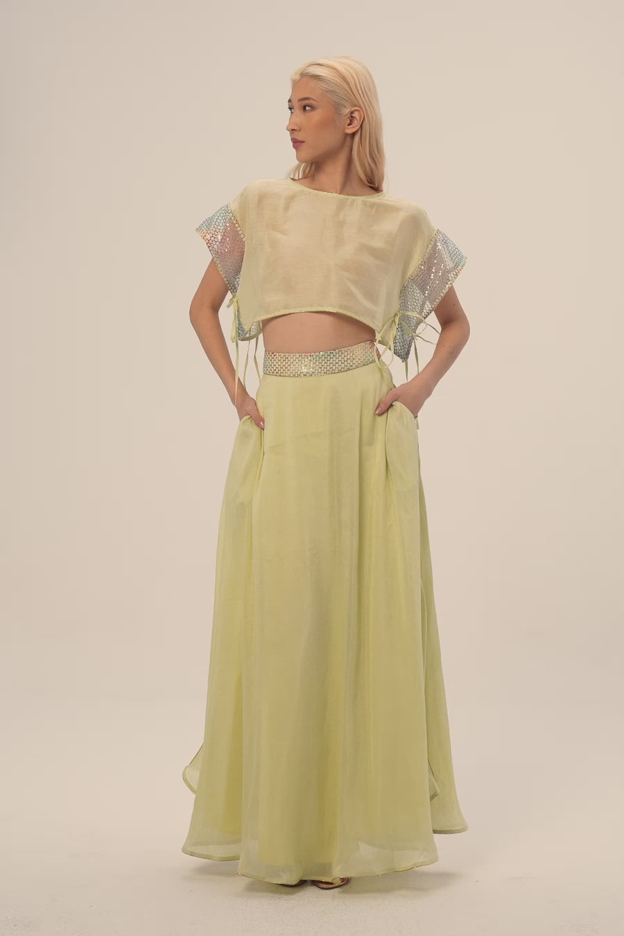 SOPHIA LINEN AND SILK TOP AND SKIRT SET