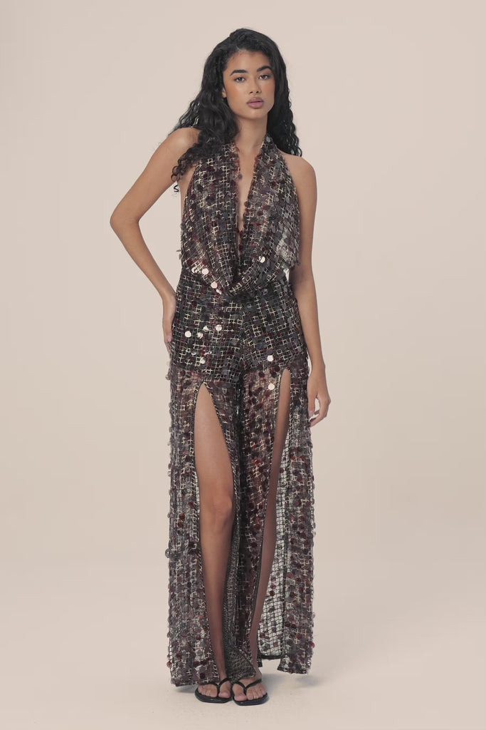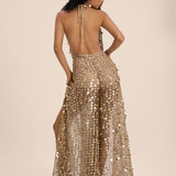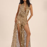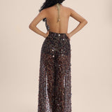 The Vienna Sequin Open-BackJumpsuit — a show-stopping fusion of glamour, movement, and sophistication.