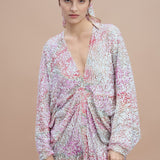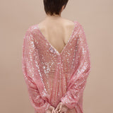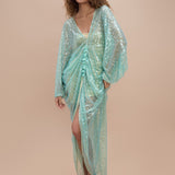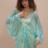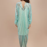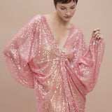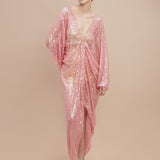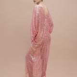 Drape yourself in the luxurious Zenda Kaftan and let every moment sparkle. Featuring a sparkling sequin design, a flattering V-neckline, and a maxi silhouette, this kaftan is perfect for making a bold statement.
